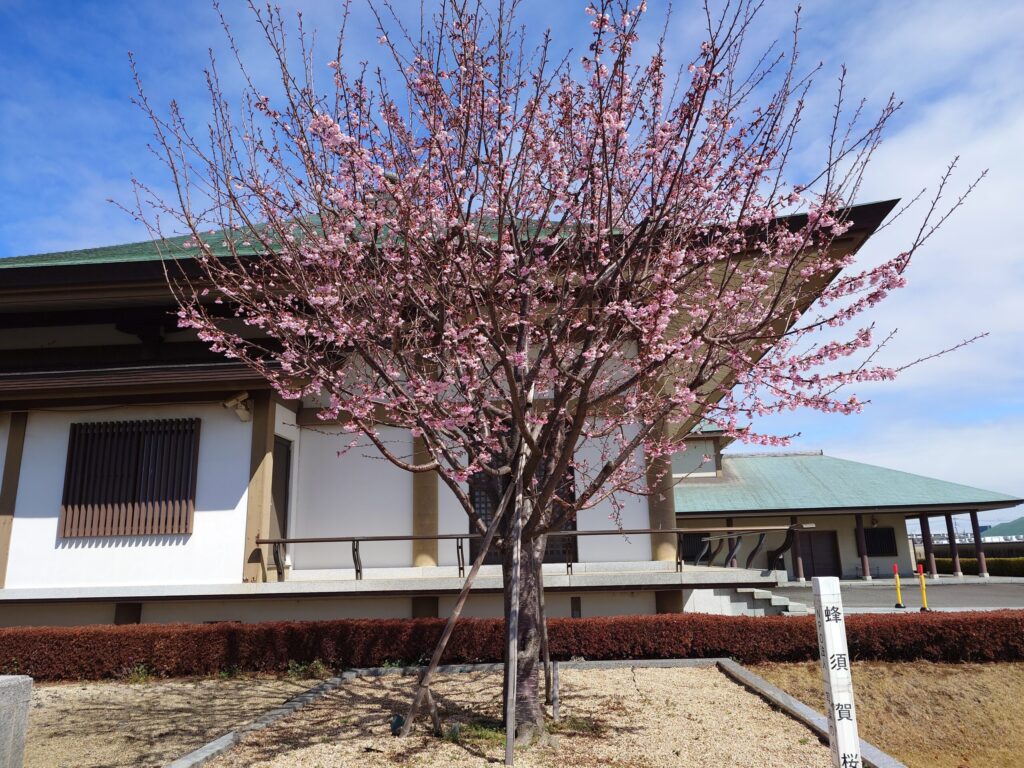 今年は2月も暖かい日が多かったせいか、境内の蜂須賀桜が既に満開近くなっております。