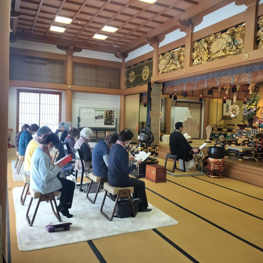 2月の仏婦新年会のお勤め。この日は讃仏偈でしたが次回からは正信偈六首引きです。